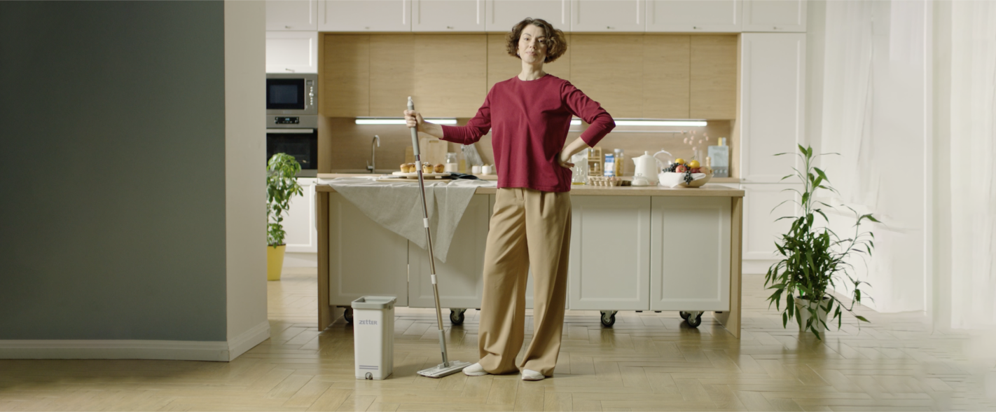 Если в предыдущих вариантах мы говорили о совместном времяпрепровождении, то сейчас расскажем о продуктах, которые помогут маме экономить время на рутине. Например, система для уборки Zetter. Благодаря вертикальной системе отжима и двойной щеточке не нужно наклоняться, промывать насадку руками, мочить руки. Этот гаджет поможет быстро и эффективно навести порядок, очень актуально для мам, так как именно они по статистике тратят больше времени на уборку.