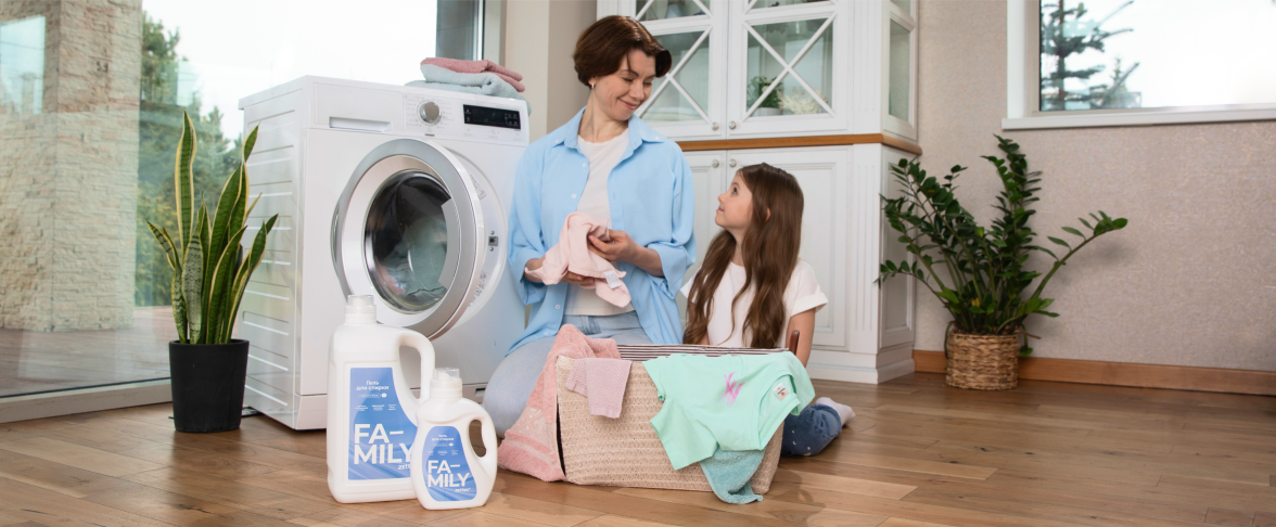 В качестве жидкого средства для стирки рекомендуем использовать гель для стирки цветного белья Zetter Family. 7 активных энзимов в составе эффективно удаляют загрязнения с заботой о вещах. Гель работает даже при низких температурах, обладает эффектом пятновыводителя и защищает цвет вещей.
