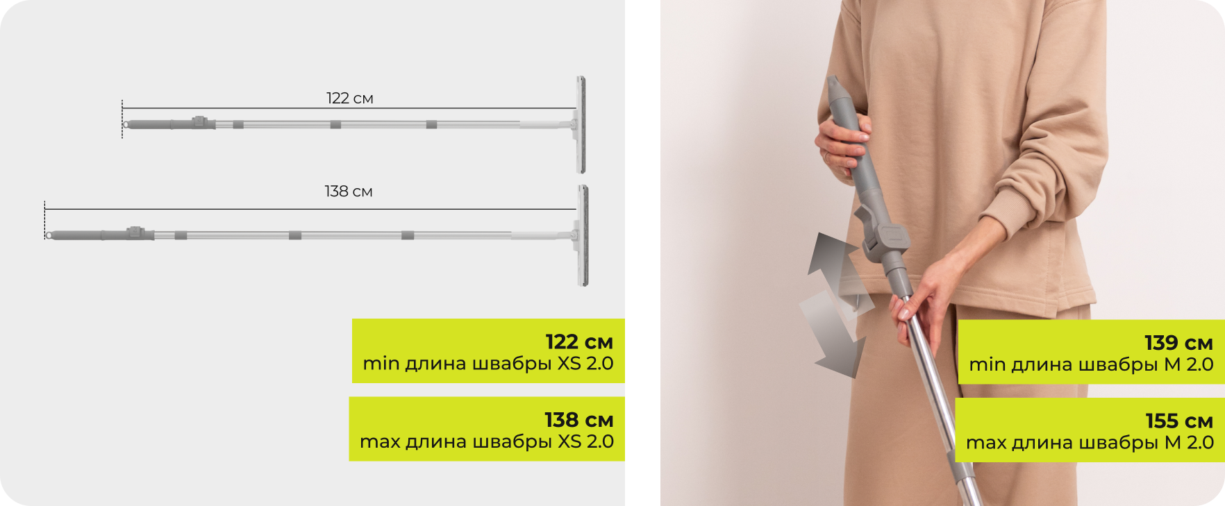 Телескопические ручки — наш ответ на вызовы, с которыми сталкиваются многие. Их можно легко регулировать в зависимости от роста пользователя и особенностей пространства. Это очень важно, потому что так вы сможете избежать излишних усилий и нагрузки на спину. Вам больше не нужно тянуться к высоким полкам и нагибаться к низким. Простым движением вы можете отрегулировать длину ручки и комфортно добраться до места.