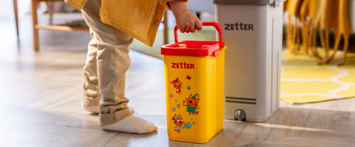 Взрослым в уборке помогает система для уборки Zetter с вертикальным отжимом. А для детей отлично подойдет новинка от Zetter — система для уборки как у взрослых. Такая же функциональная и красивая, детям легко использовать систему, так как она легче взрослой, её удобно переносить.