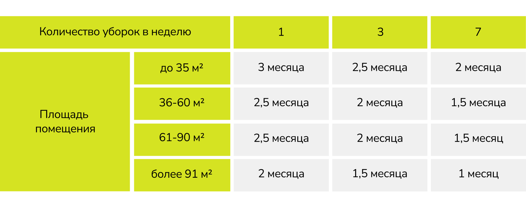 5. Своевременно меняйте насадку в зависимости от ваших потребностей: как часто вы проводите влажную уборку, а также от площади квартиры. Мы сделали таблицу рекомендаций, по которой легко понять, как часть нужно менять универсальную насадку,