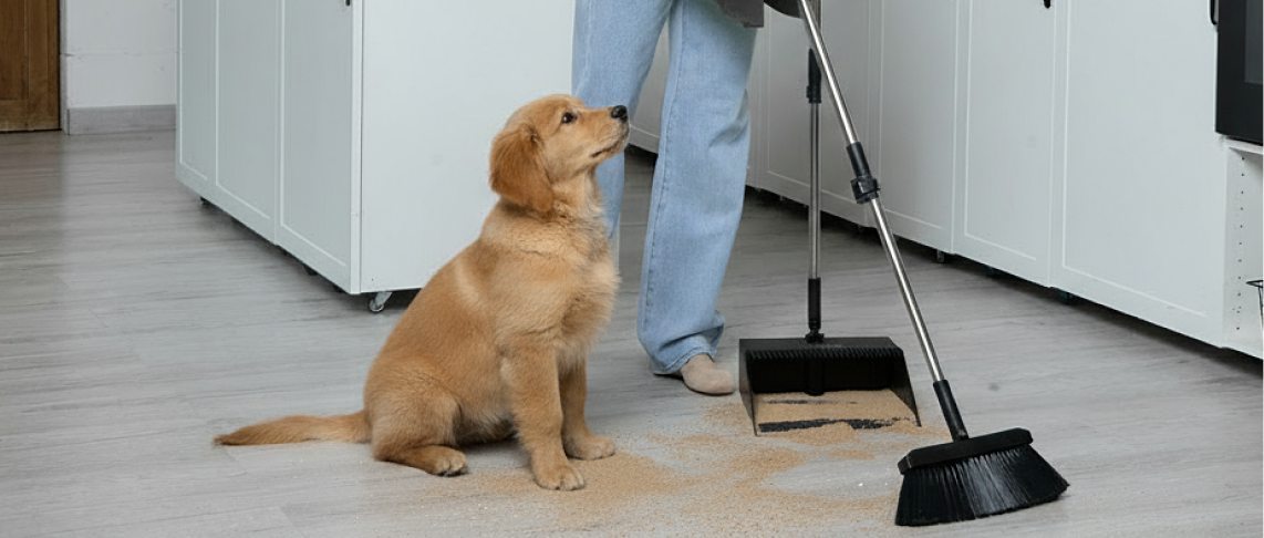 - Вы вернулись с прогулки с собакой. Лапы питомца принесли в дом песок и землю — то, что может засорить пылесос.