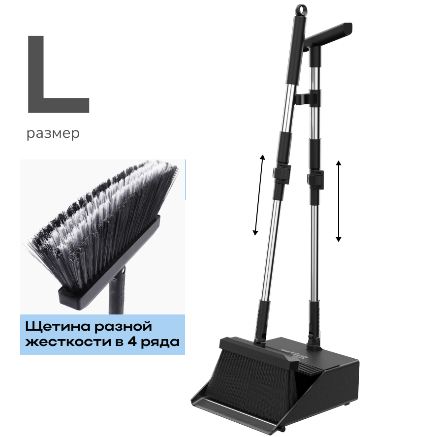 Набор для уборки: щетка и совок L, цвет черный