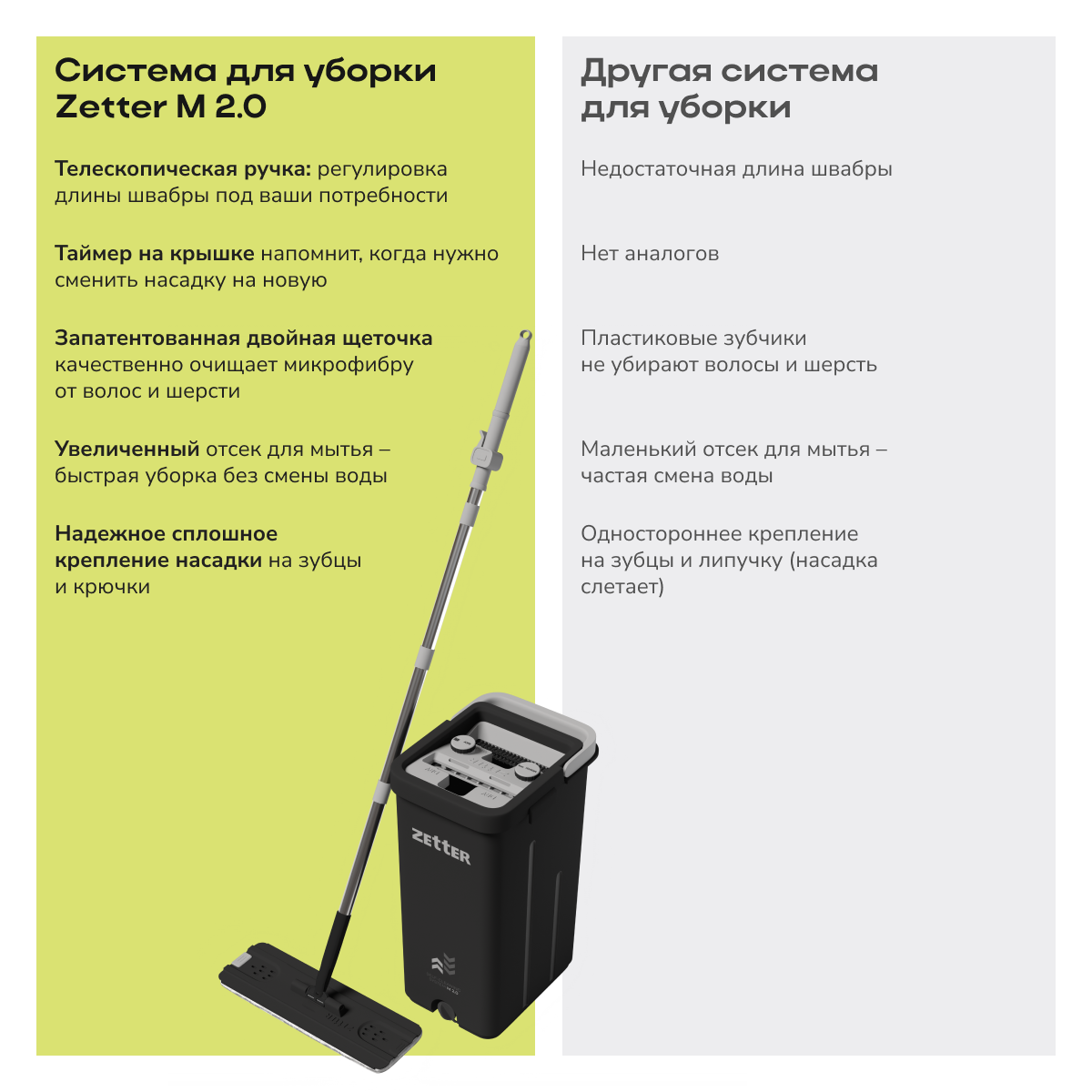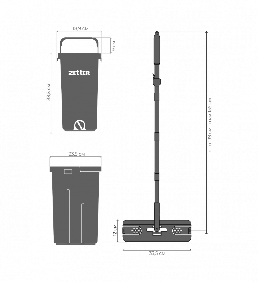 Швабра с отжимом и ведром Zetter M 2.0 (10 л) — Zetter