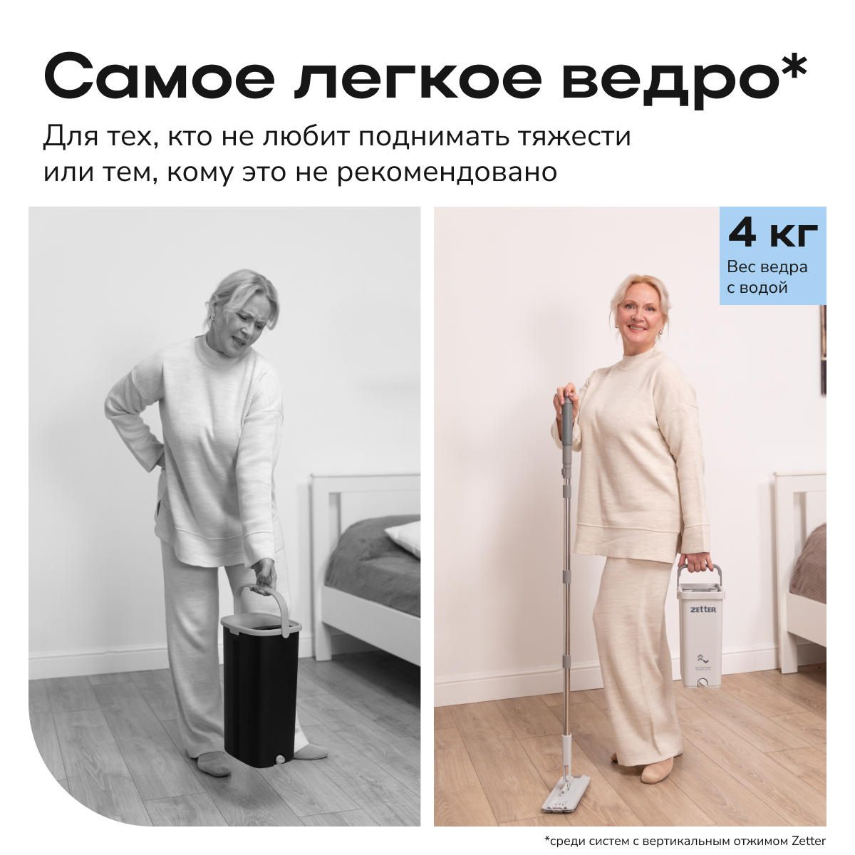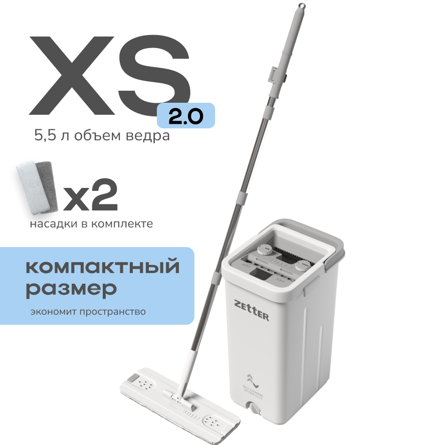 Швабра с отжимом и ведром Zetter XS 2.0 (5.5л) — Zetter